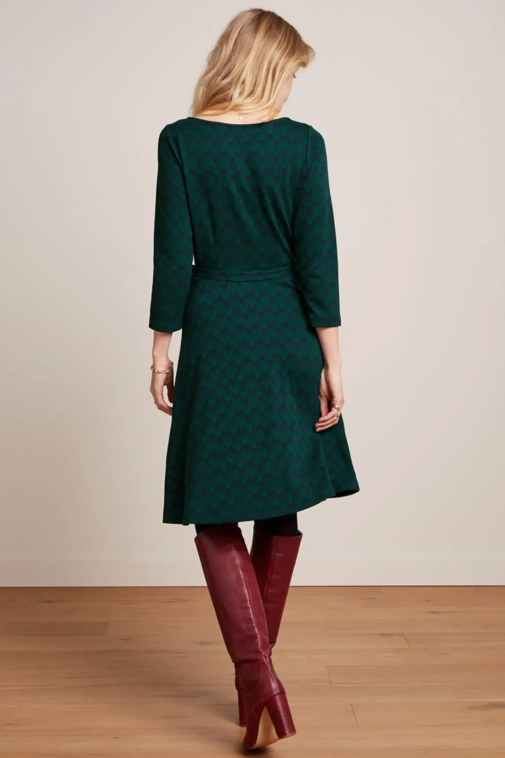 Product details Wijd uitlopende jurk Ronde hals7/8 MouwenStrikceintuurGeweven jacquardComfort stretchGrafische print pr…