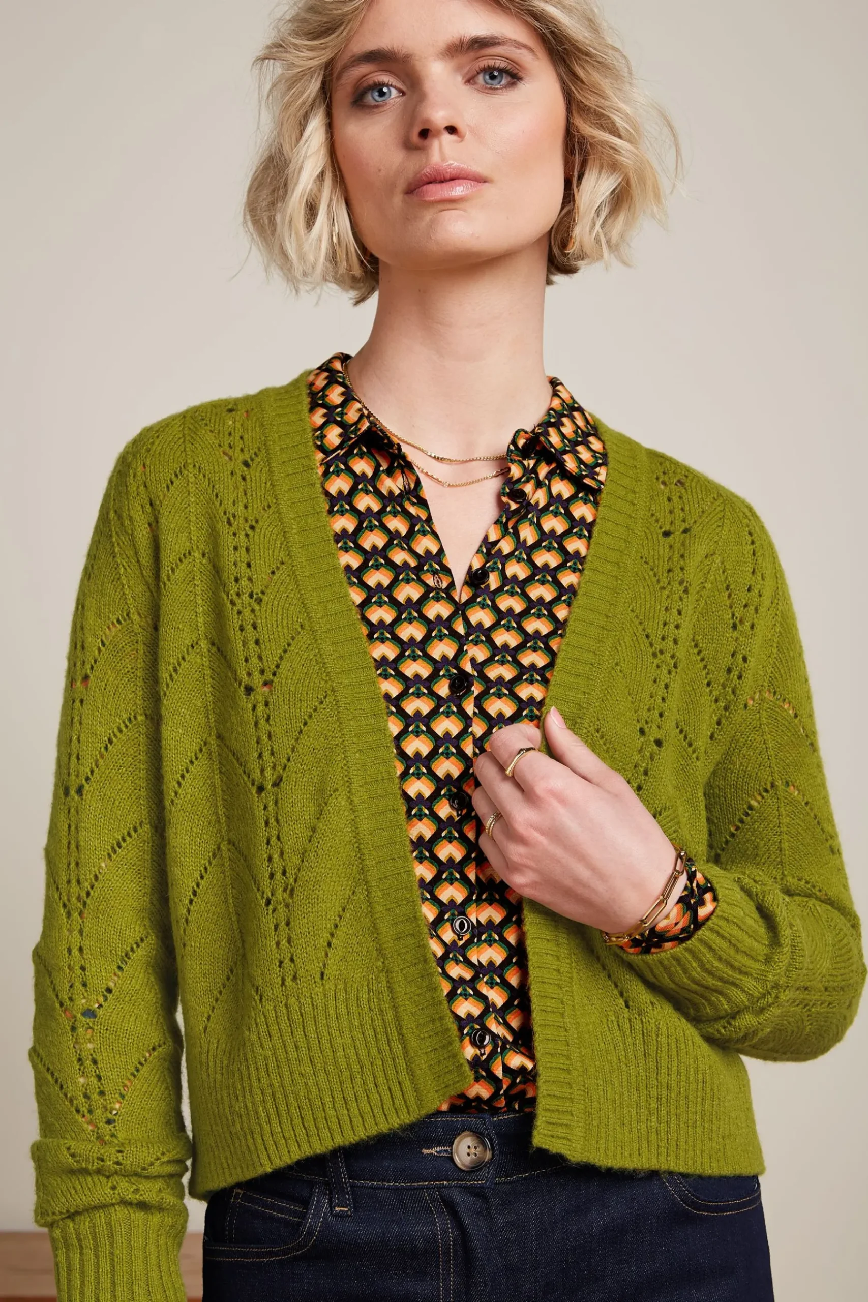 Product details Opengebreid vestLosse fitRaglan mouwenRibboordenPluizige knitStretch stof productspecificatiesGemaakt i…