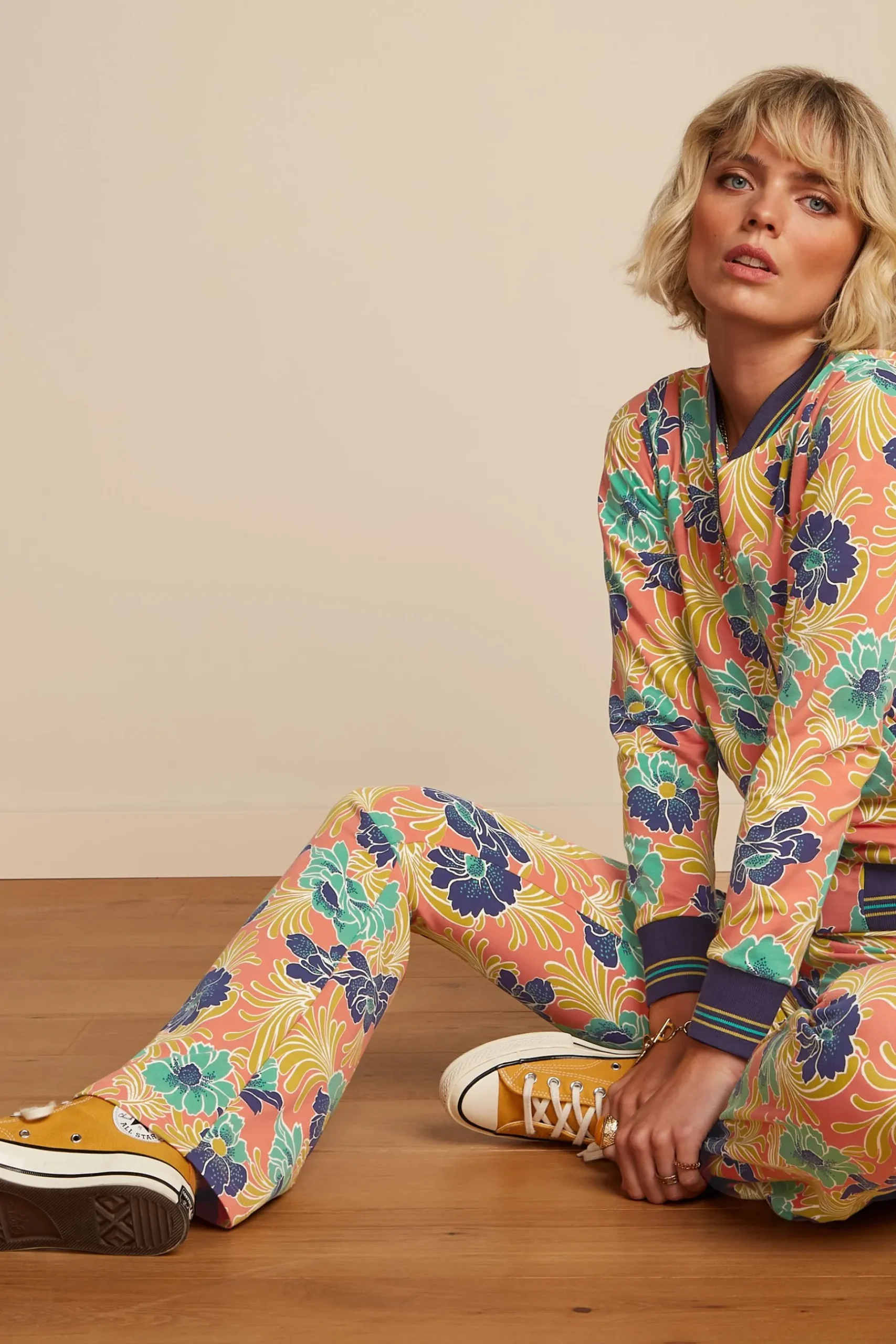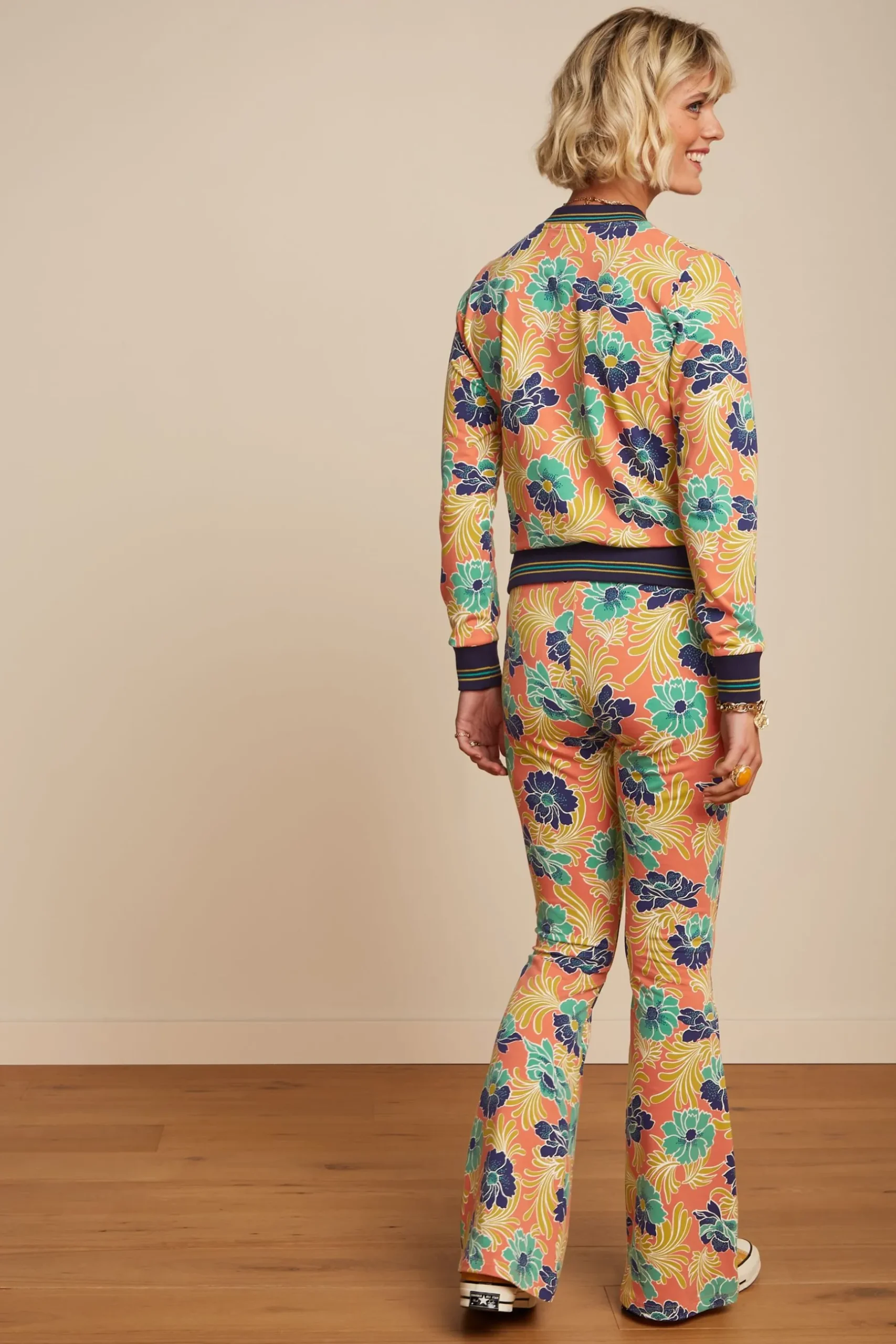 Product details Mid waist broekElastische taillebandUitlopende pijpenSweatstofBotanische print productspecificatiesGema…