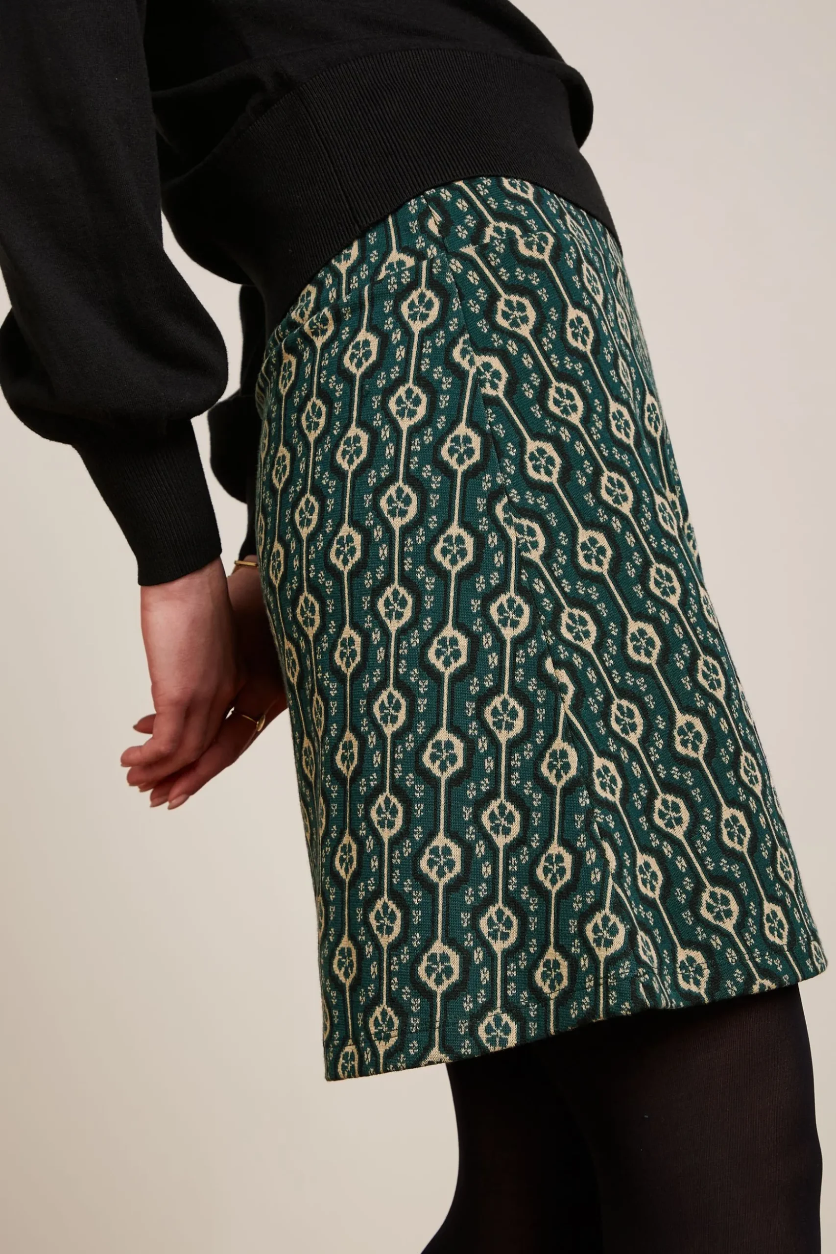 Product details A-lijn rokBrede taillebandJersey jacquardStretchstofGrafische print productspecificatiesGemaakt in: Tü…