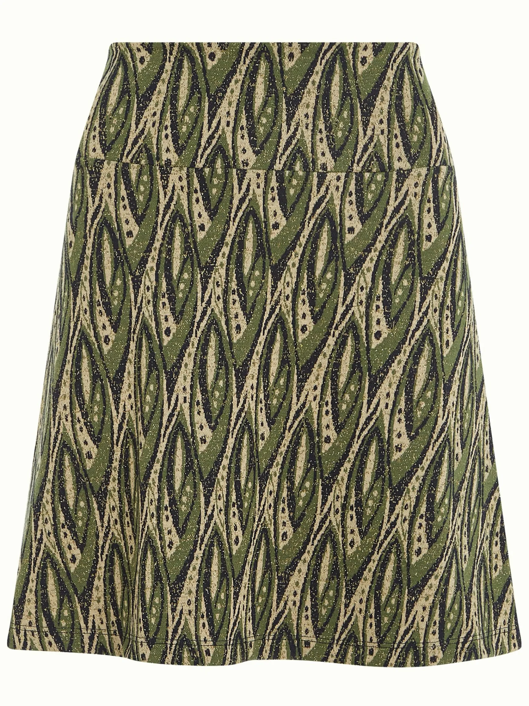 Product details A-lijn rokBrede taillebandComfort stretchJersey jacquardGrafische print met glitter productspecificatie…