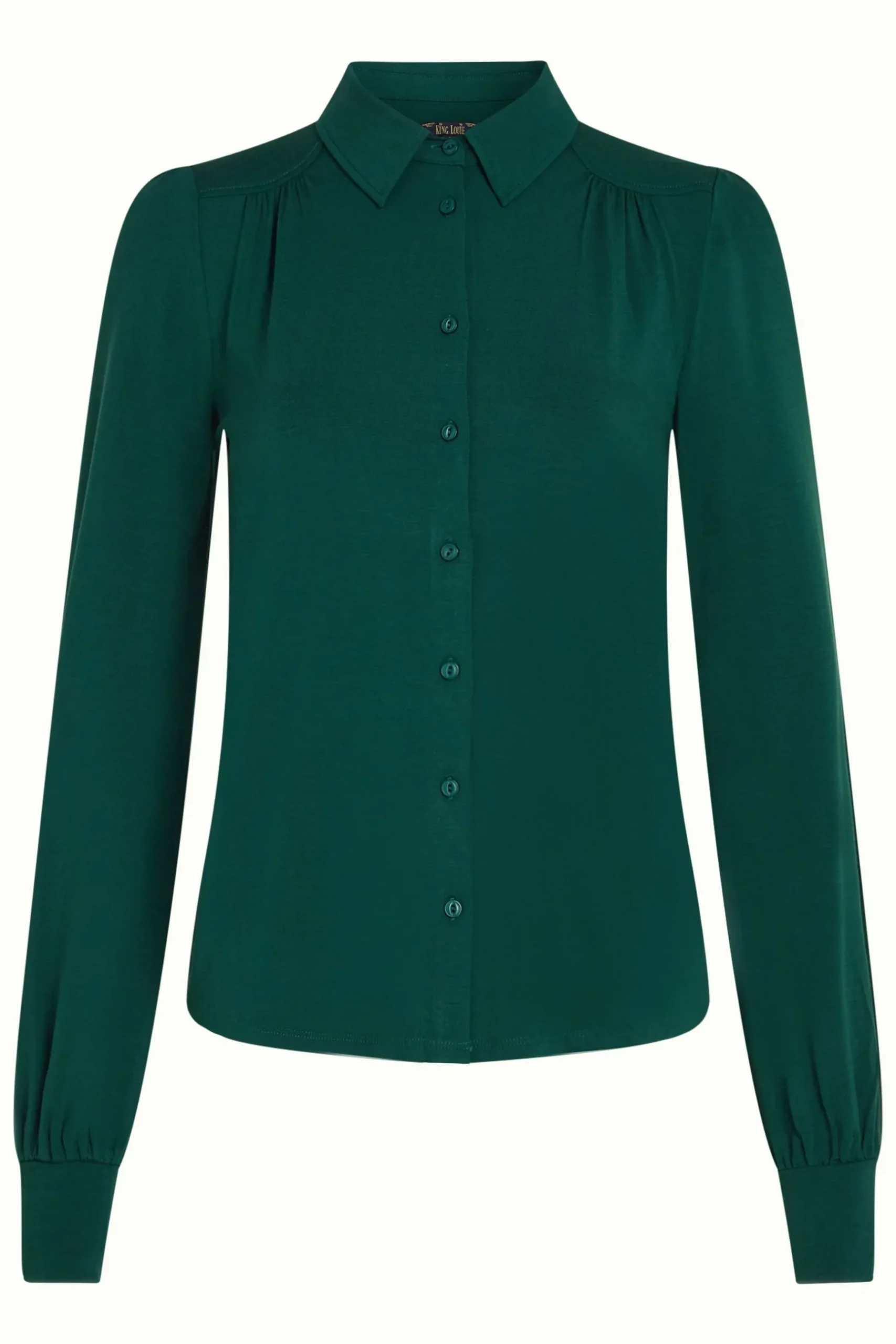 Product details Blouse met kraagLange mouwenKnoopsluitingPlooien vanuit de schouderpasPlooien bij de mouwenJerseyStretc…