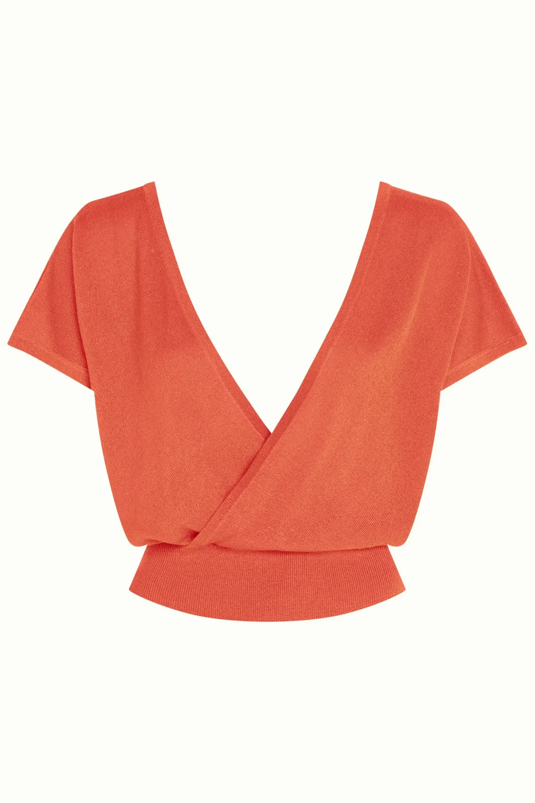 Product details Gebreide topDiepe dubbele V-halsKorte mouwenElastische breede zoomGlitter knitStretch productspecificat…