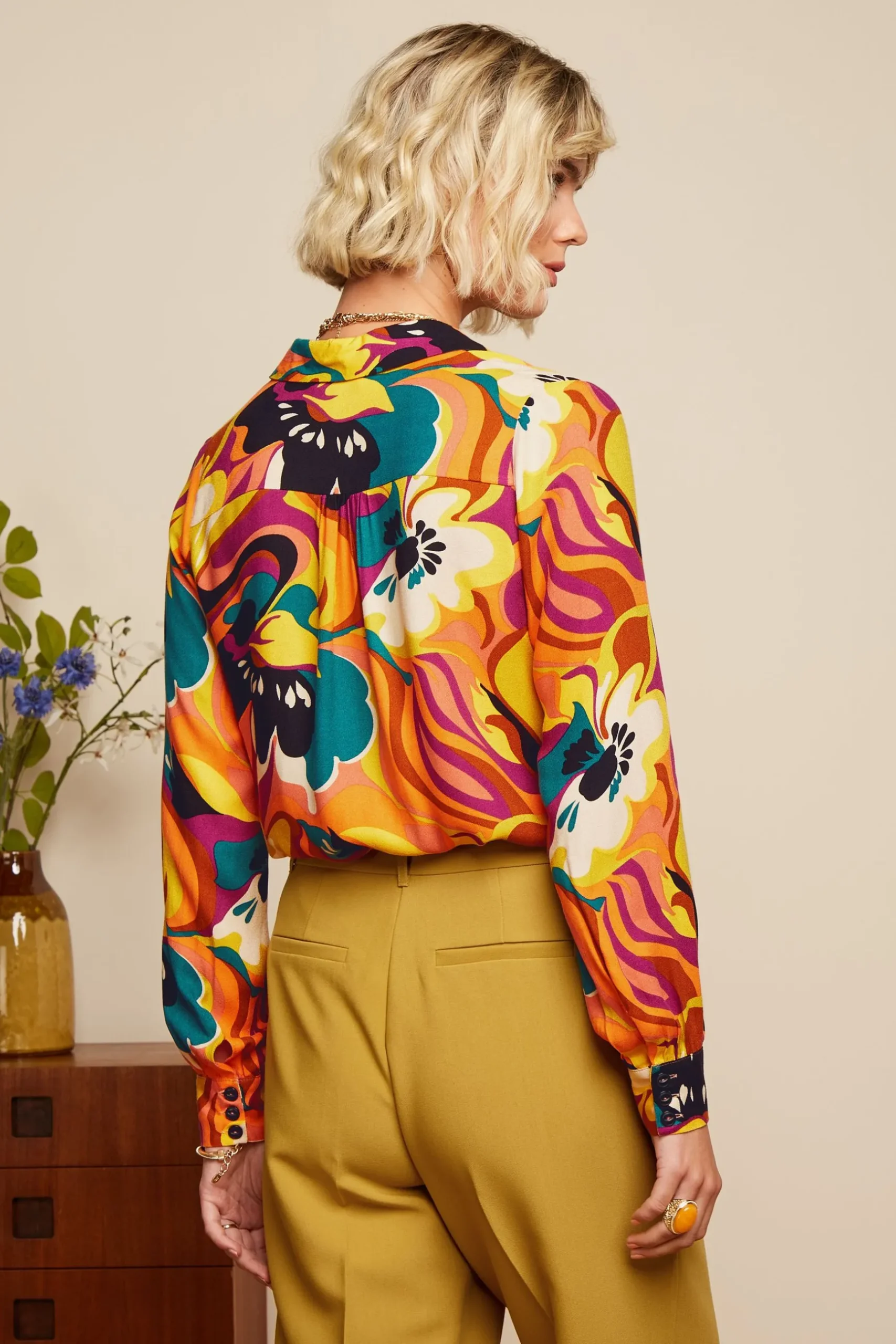 Product details Blouse met losse fitLange mouwenBlouse kraagKnoopsluitingGewevenNon stretchBloemenprint productspecific…