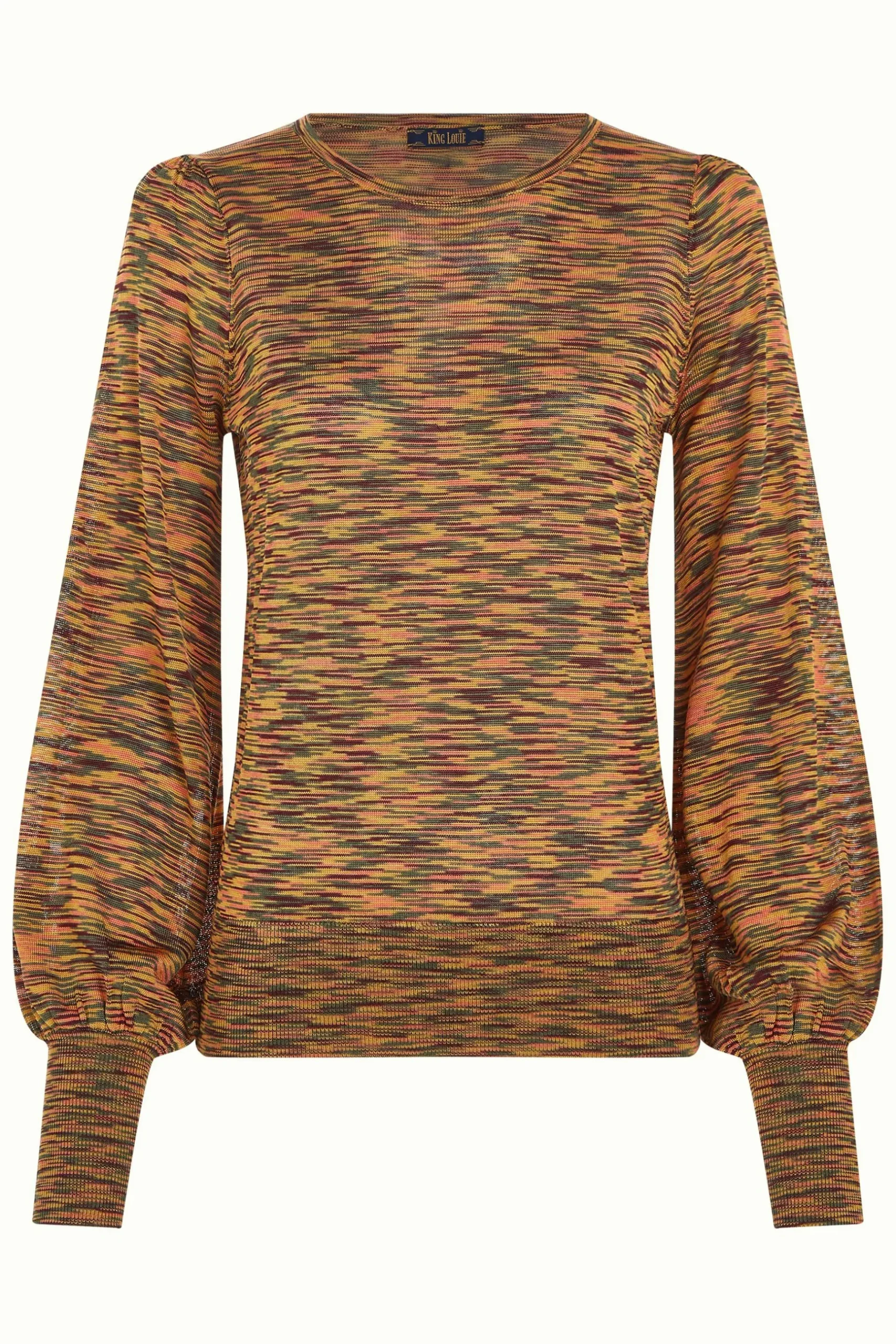 Product details Top met wijde pofmouwenRonde halsGeribbelde zoom en manchettenGebreidStretch productspecificatiesGemaak…