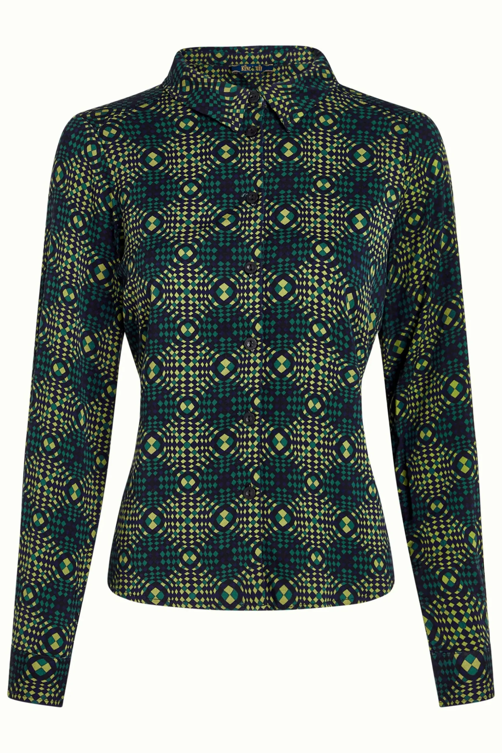 Product details Getailleerde blouseBlouse kraagLange mouwenKnoopsluitingGewevenStretchGrafische print productspecificat…