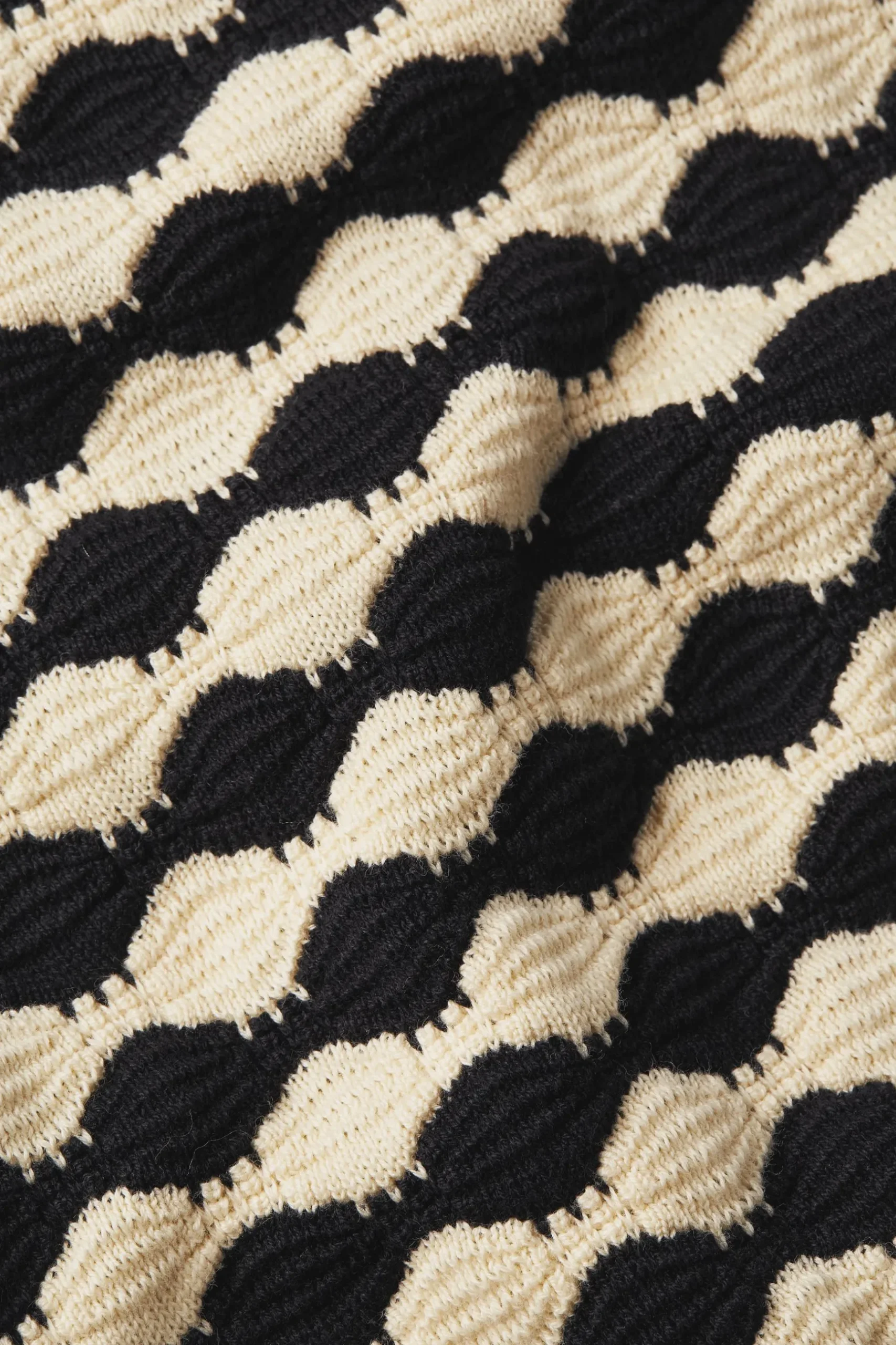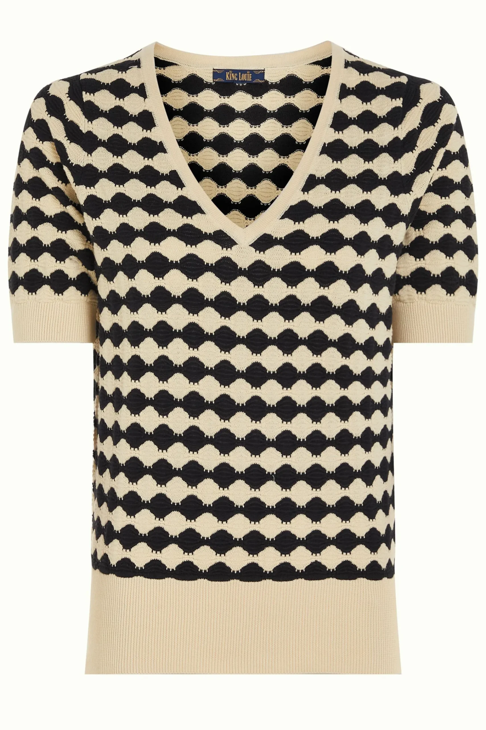 Product details Gebreide topV-halsKorte mouwenGeribbelde boordenStretch Grafisch patroon productspecificatiesGemaakt in…