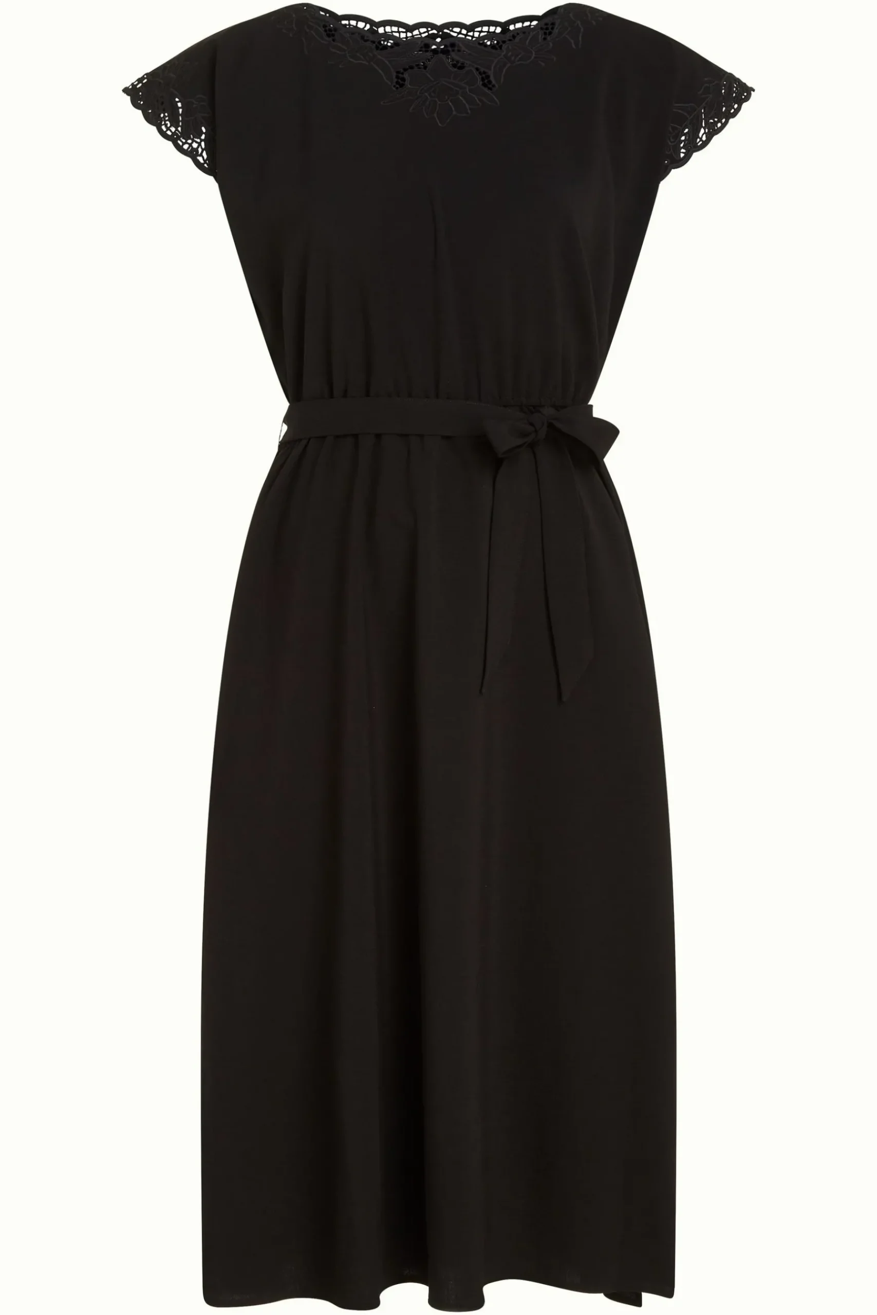 Opengewerkt borduursel langs de halslijn en mouwen