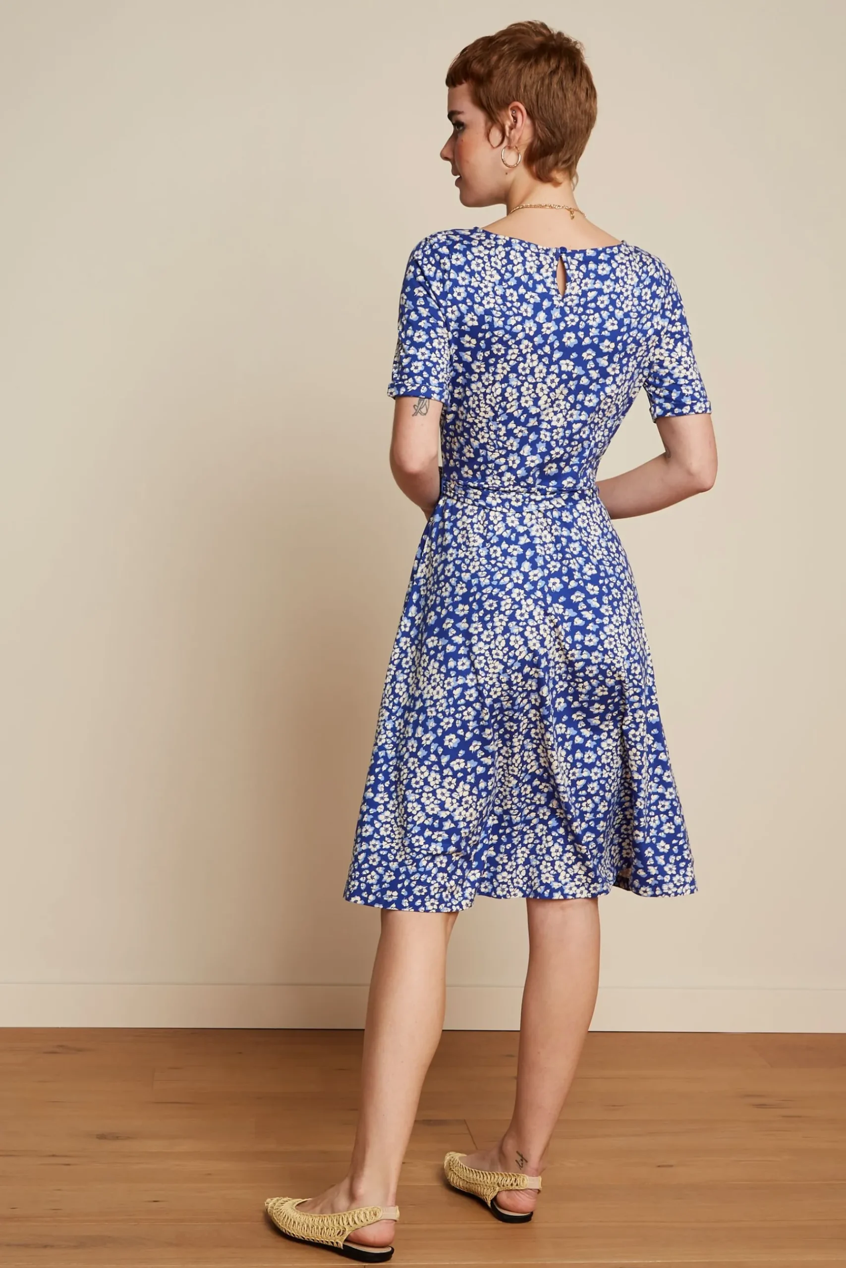 Product details Wijd uitlopende jurkRonde halsKorte mouwenStrikceintuurKnoopsluiting op de rugJerseyStretchBloemenprint…