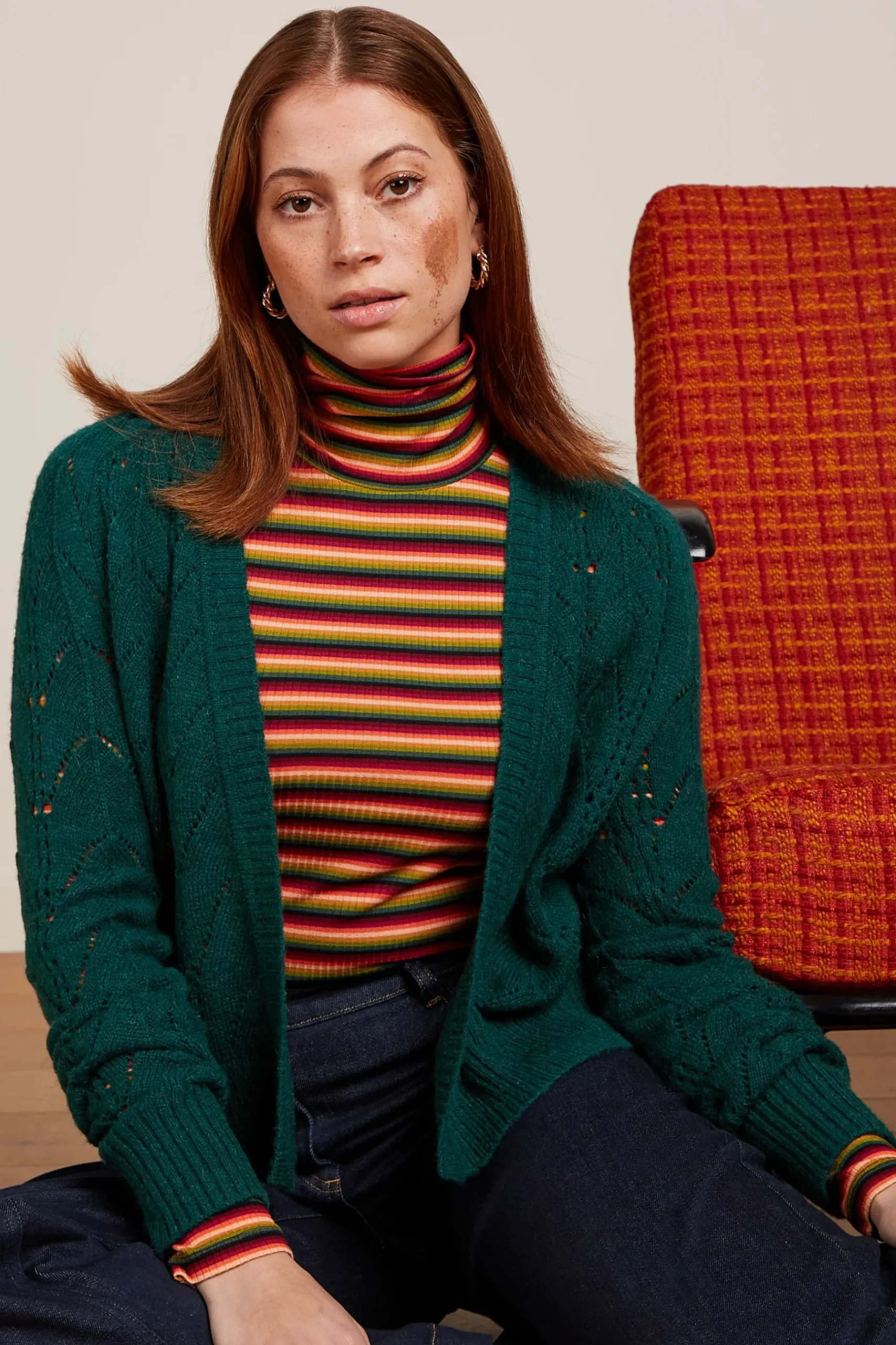 Product details Opengebreid vestLosse fitRaglan mouwenRibboordenPluizige knitStretch stof productspecificatiesGemaakt i…