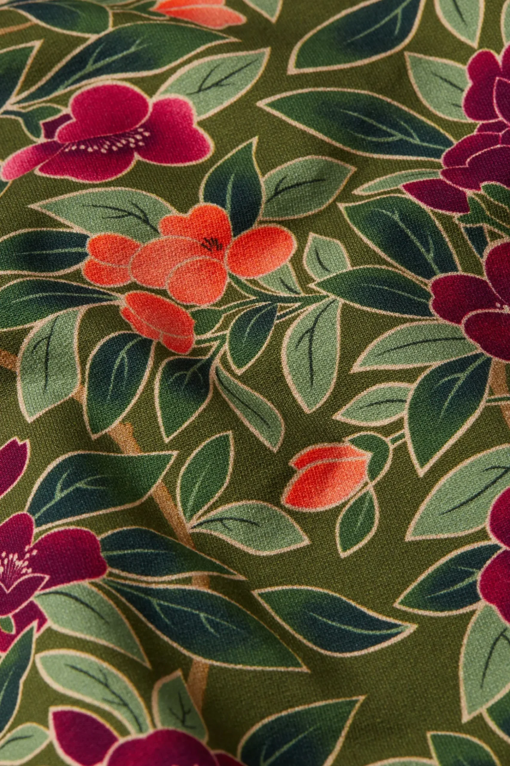 Product details A-lijn rokBrede taillebandStretch stofJersey sweatBotanische print productspecificatiesGemaakt in: Tür…