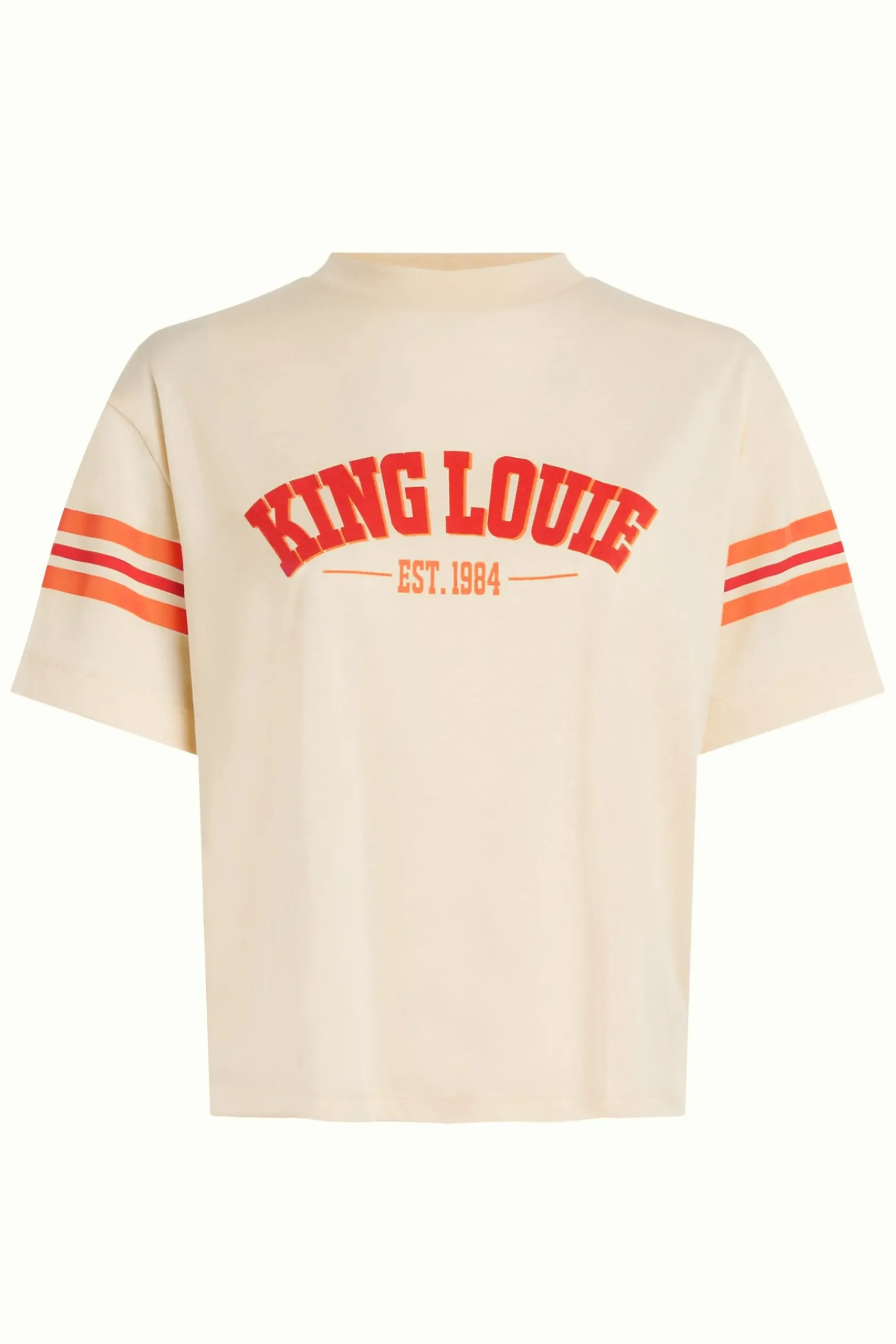 Product details Ruimvallend t-shirtKorte mouwenJerseyStretchstofKing Louie logo productspecificatiesGemaakt in: Türkiy…