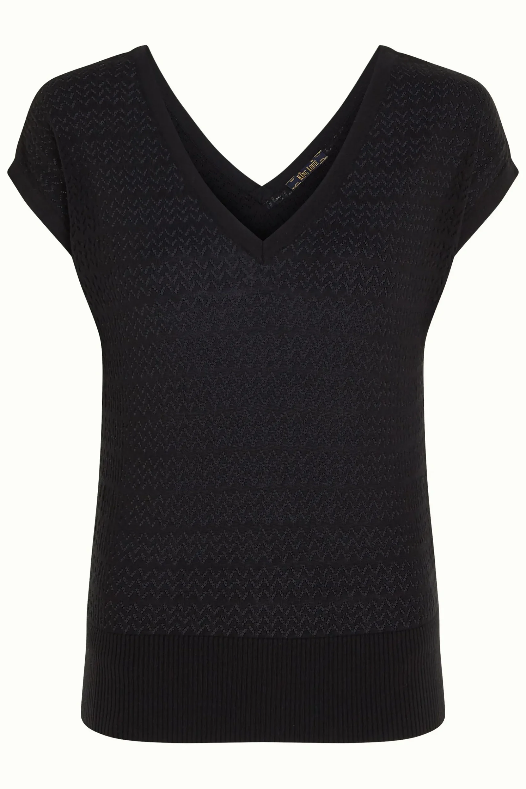 Product details Gebreide topKorte mouwenDubbele V-halsGeribbelde zoomAjour breiselStretch stof productspecificatiesGema…