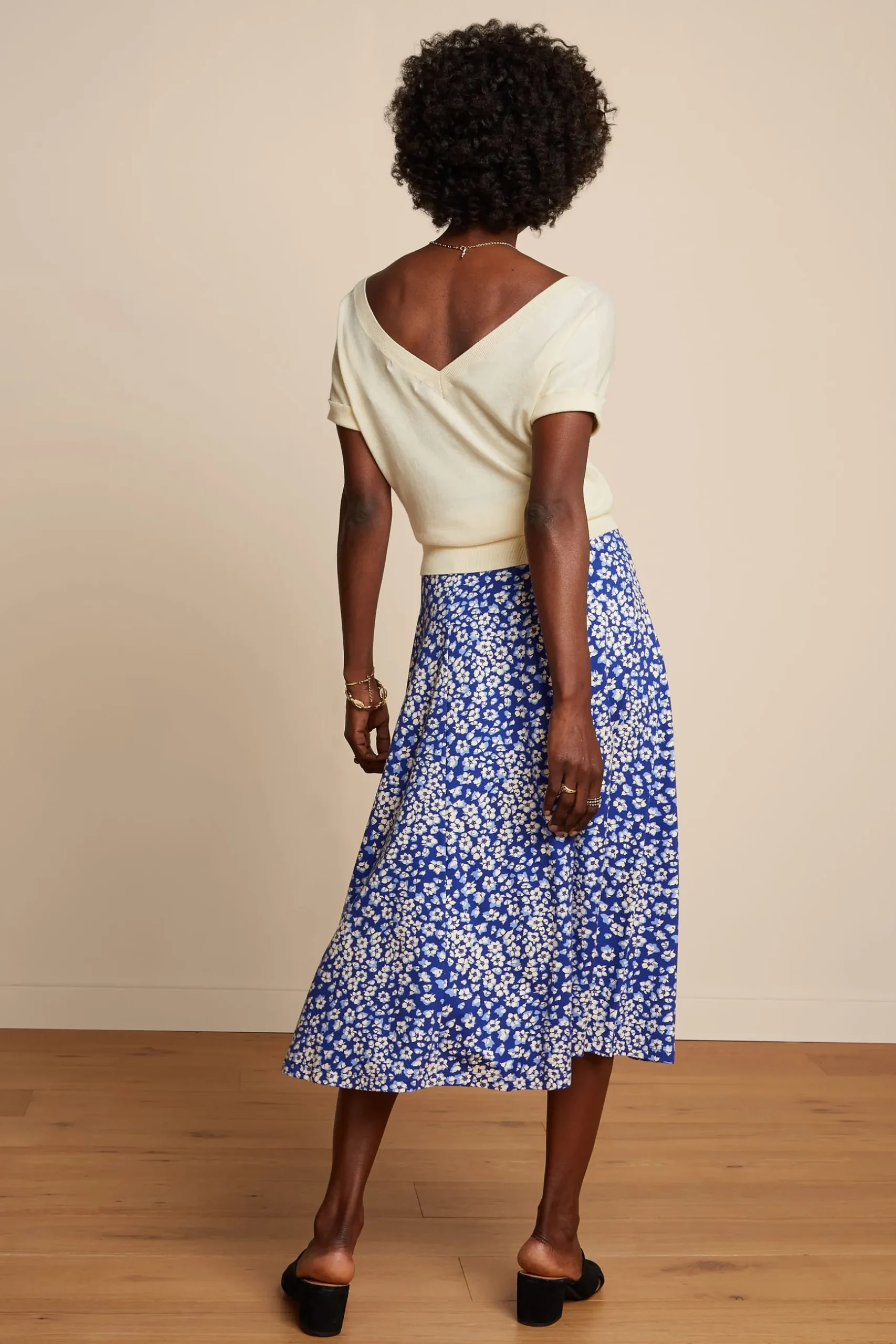 Product details Midi rokWijd uitlopendDoorknoopsluitingStrikdetail op de voorkantGewevenNon stretchBloemenprint product…