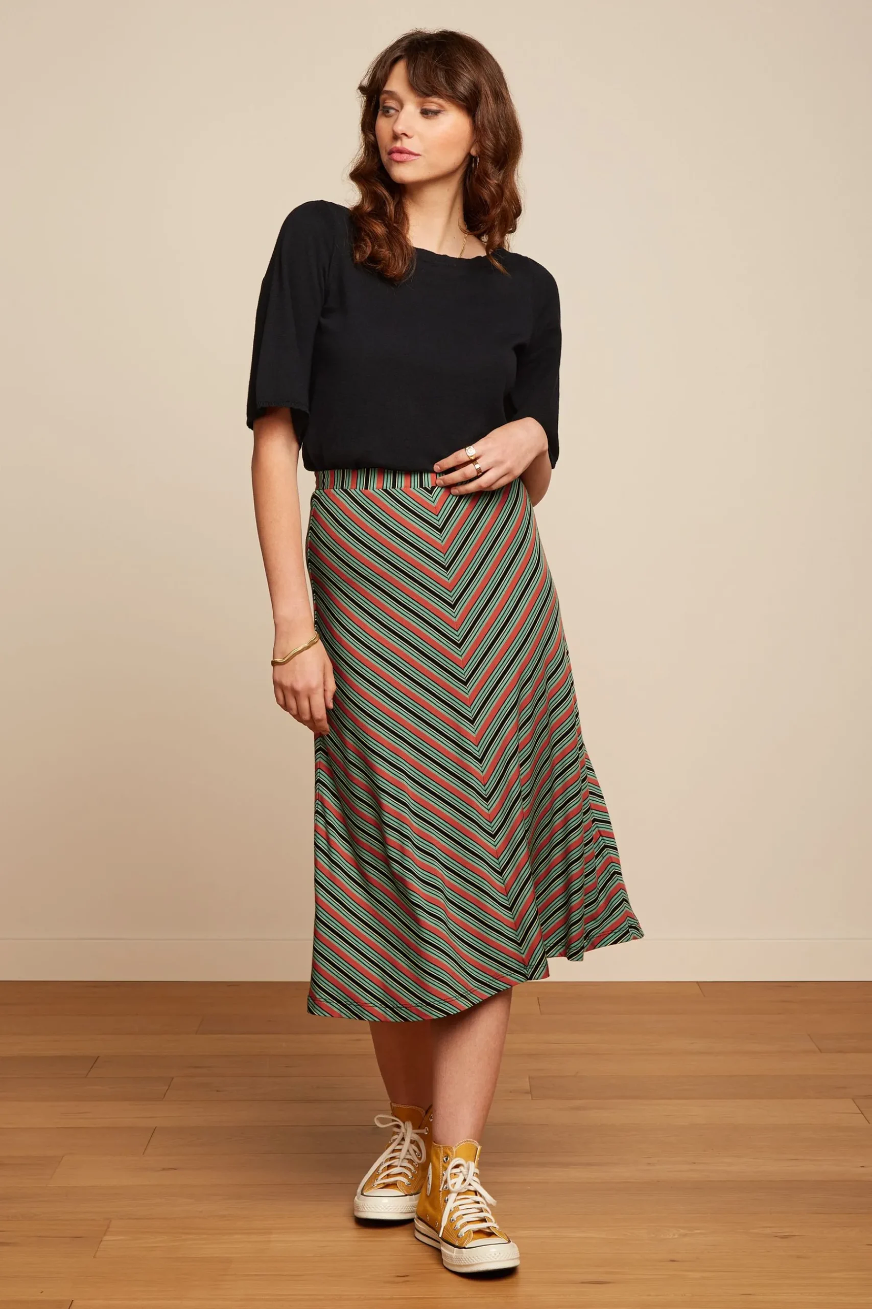 - Wijd uitlopende midi rok