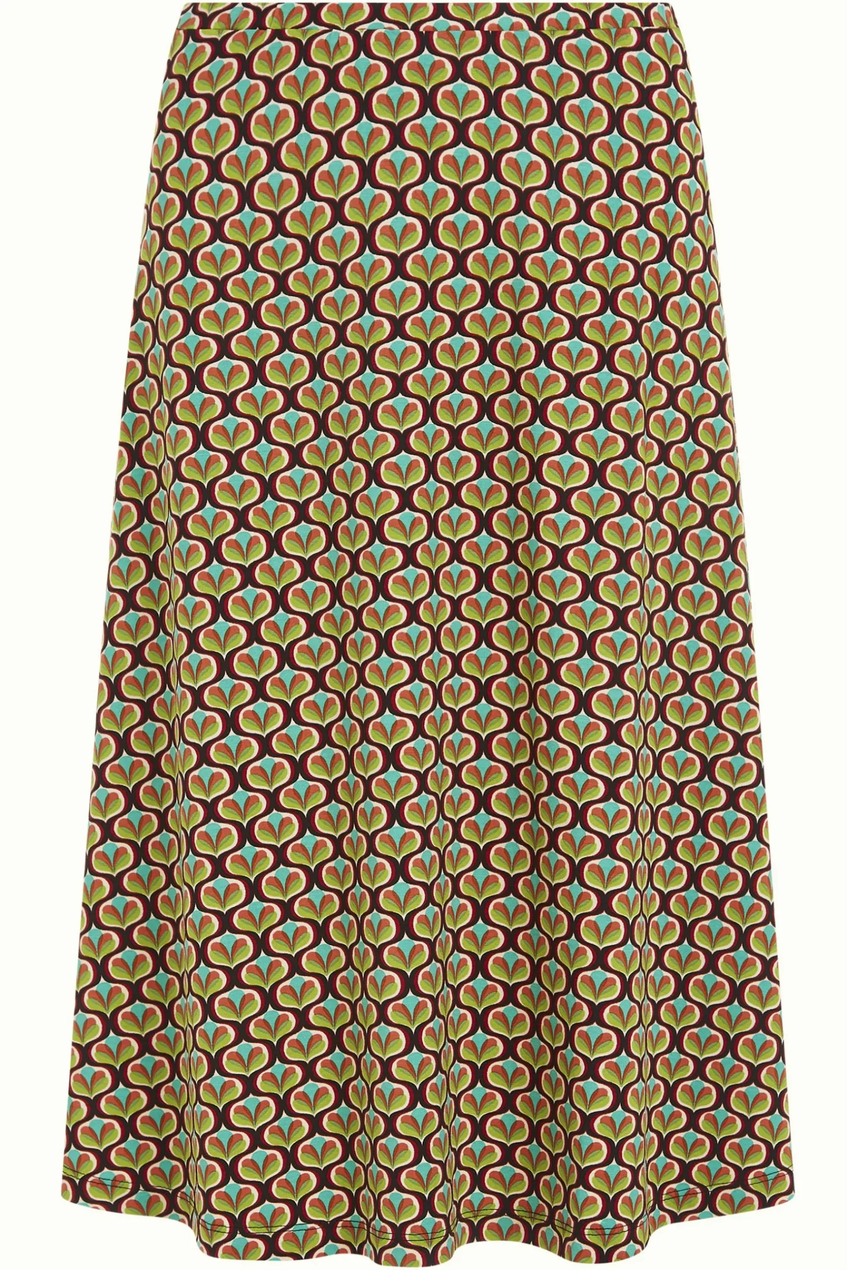 Product details Wijd uitlopende midi rokElastische taillebandJerseyStretchGrafische print productspecificatiesGemaakt i…