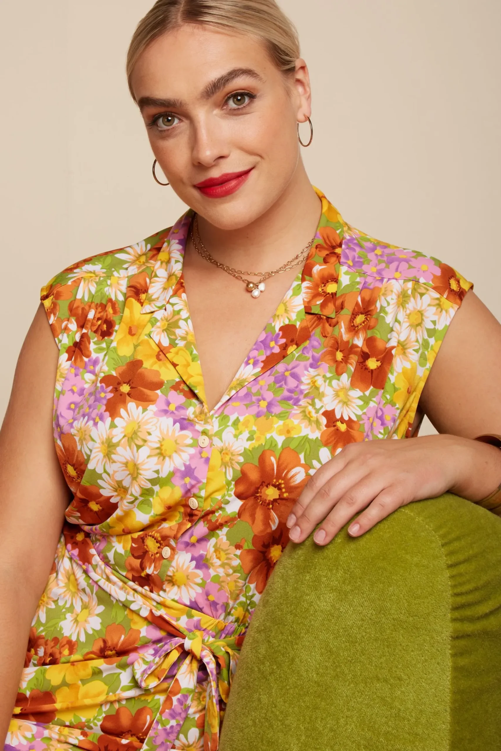 Product details Mouwloze jurkReverskraagKnoopsluiting in de topElastische tailleStrikceintuurGladde jersey?StretchBloem…