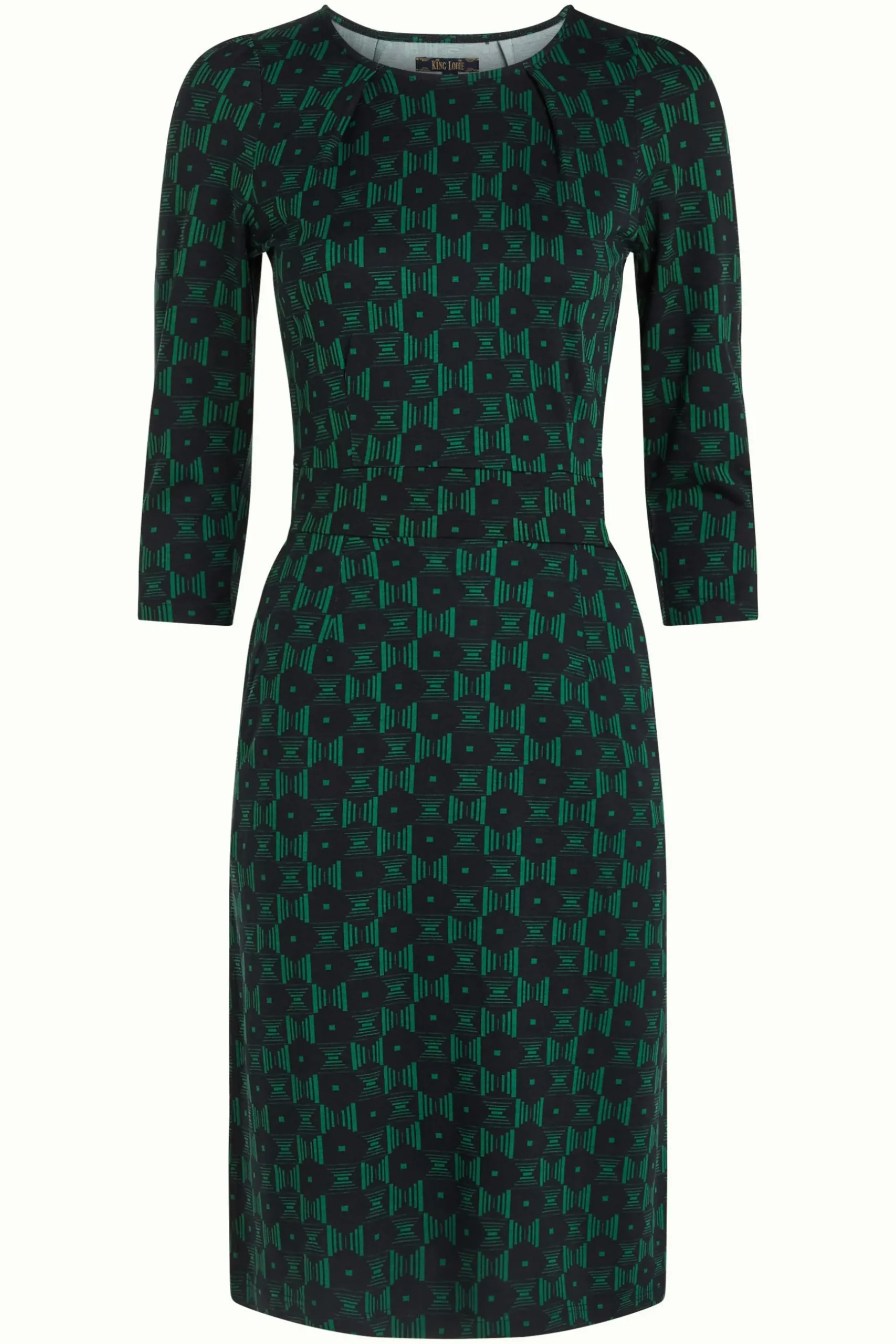 Product details Jurk met aangesloten fitRonde hals met plooitjes7/8 MouwenVaste taillebandZakken in de zijnaadJerseyStr…