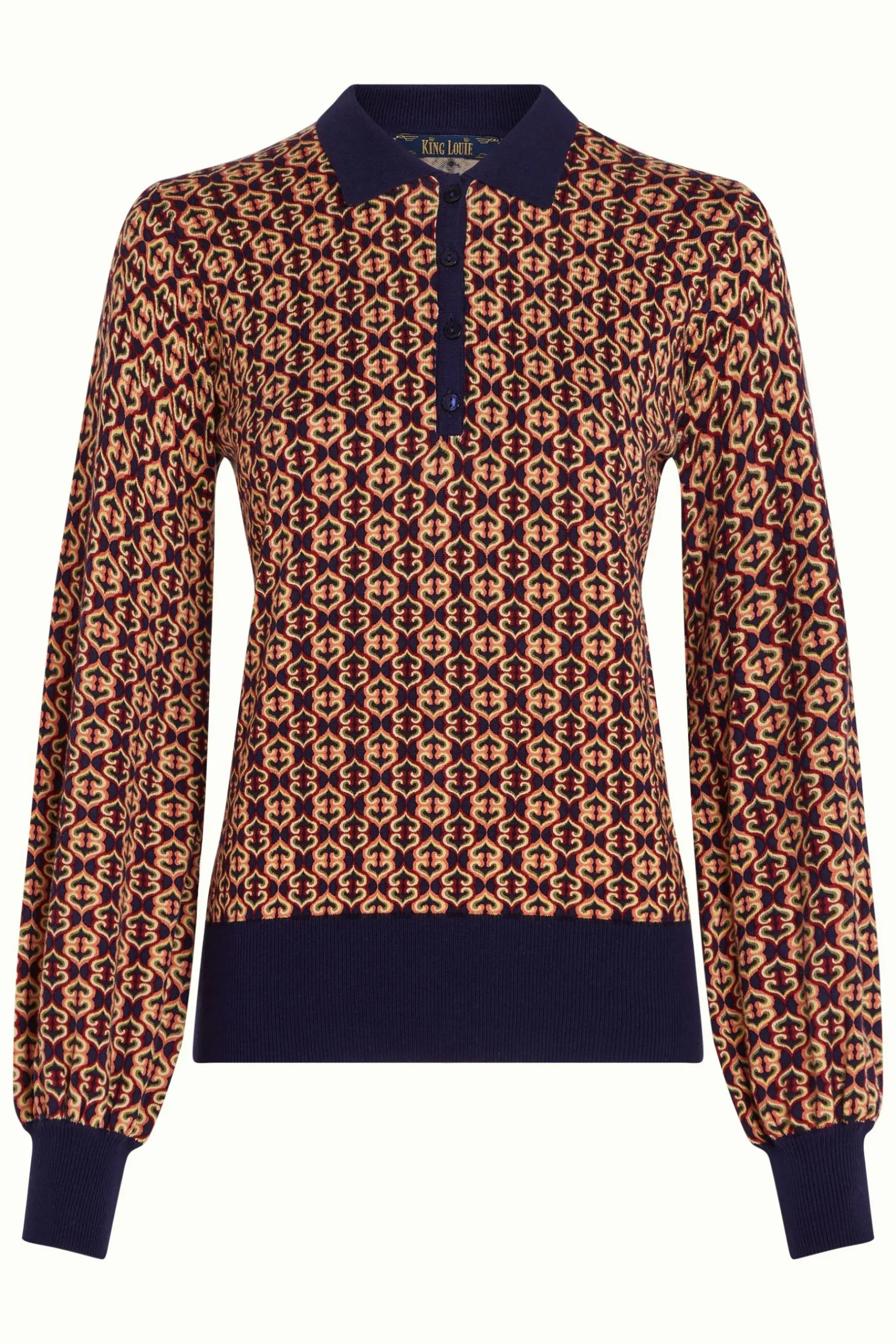 Product details PoloLange ballonmouwenKnoopsluitingDubbel gebreide jerseyStretchGrafische print productspecificatiesGem…