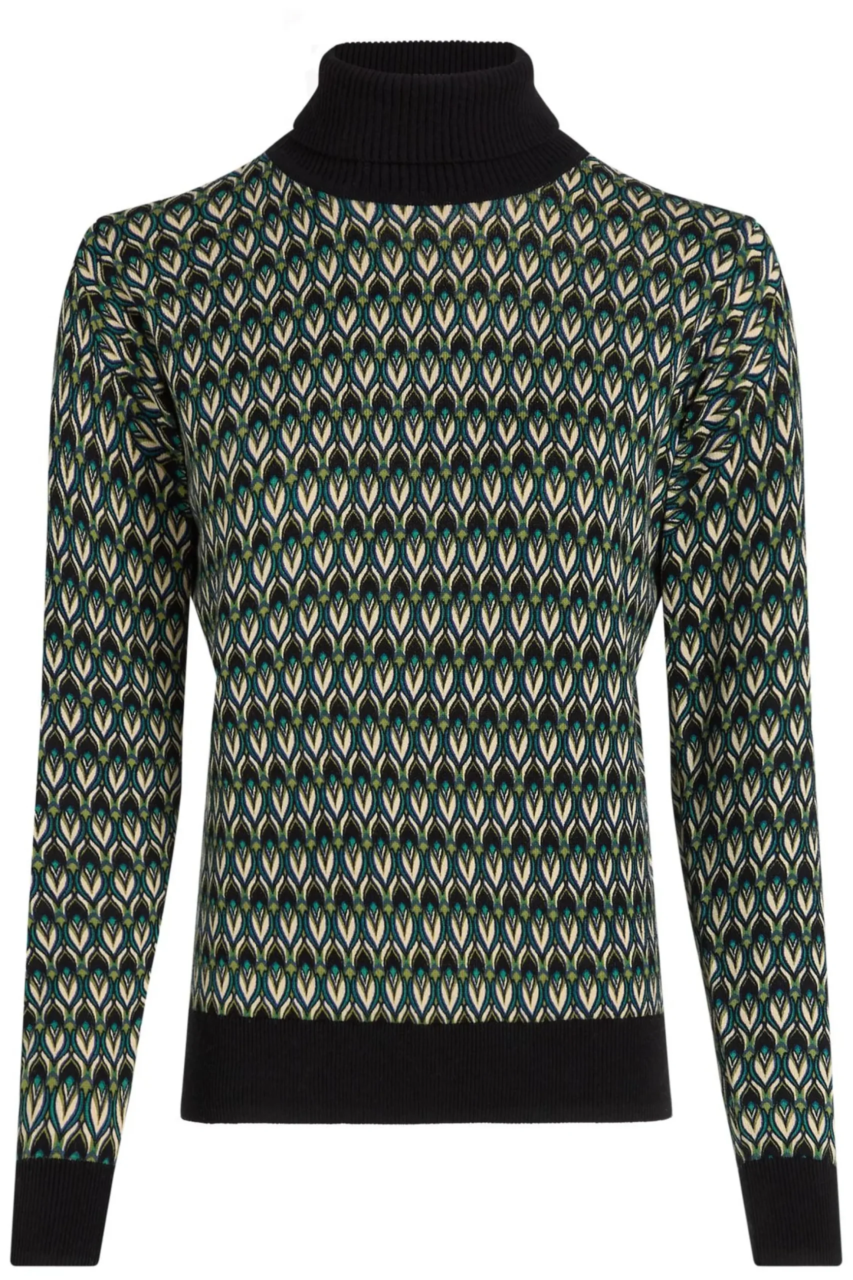 Product details ColtruiLange mouwenGeribbelde, contrasterende boordenGebreidStretchGrafische print productspecificaties…