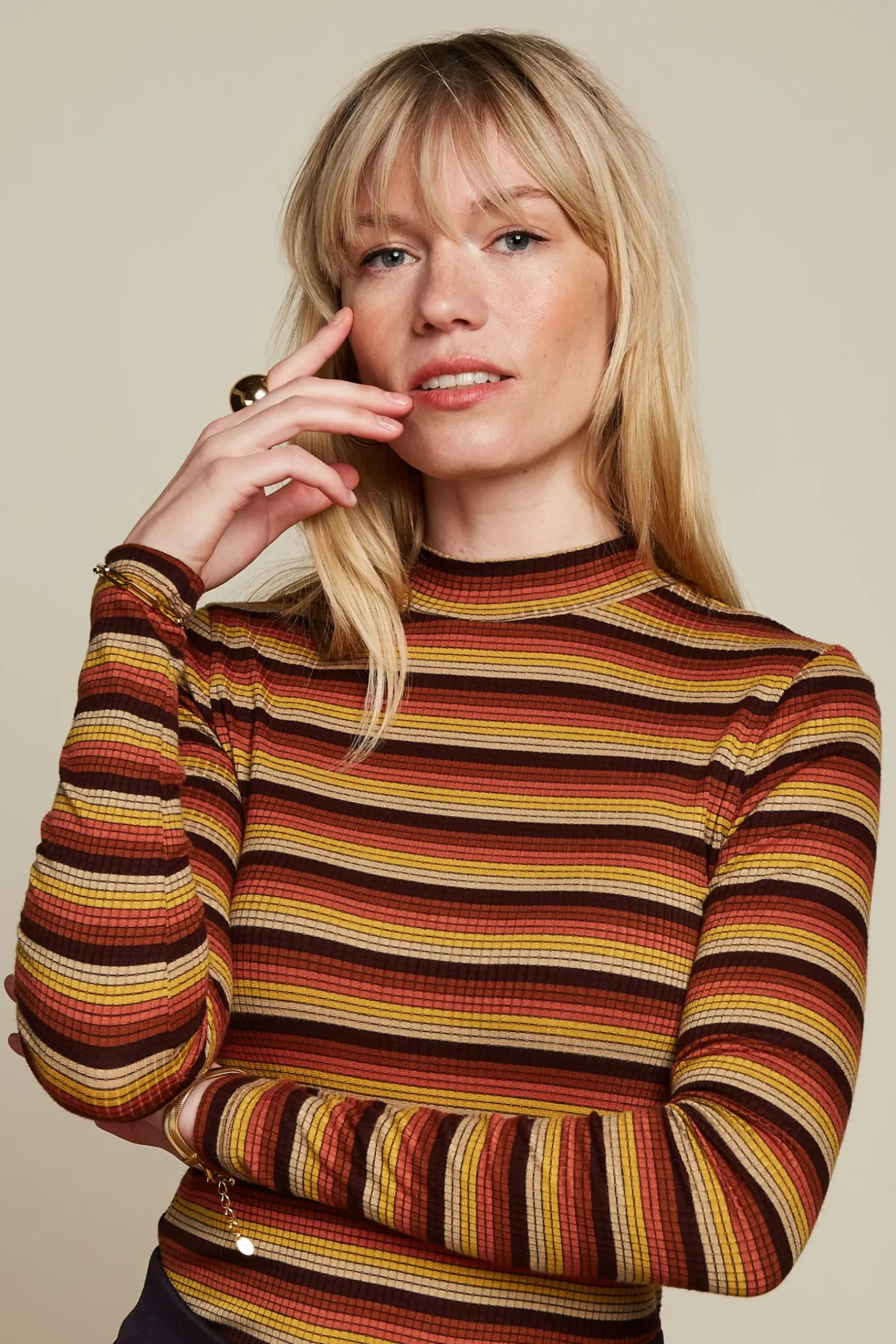 Product details Top met opstaande kraagLange mouwenRib jerseyStretchGestreept productspecificatiesGemaakt in: Türkiye …