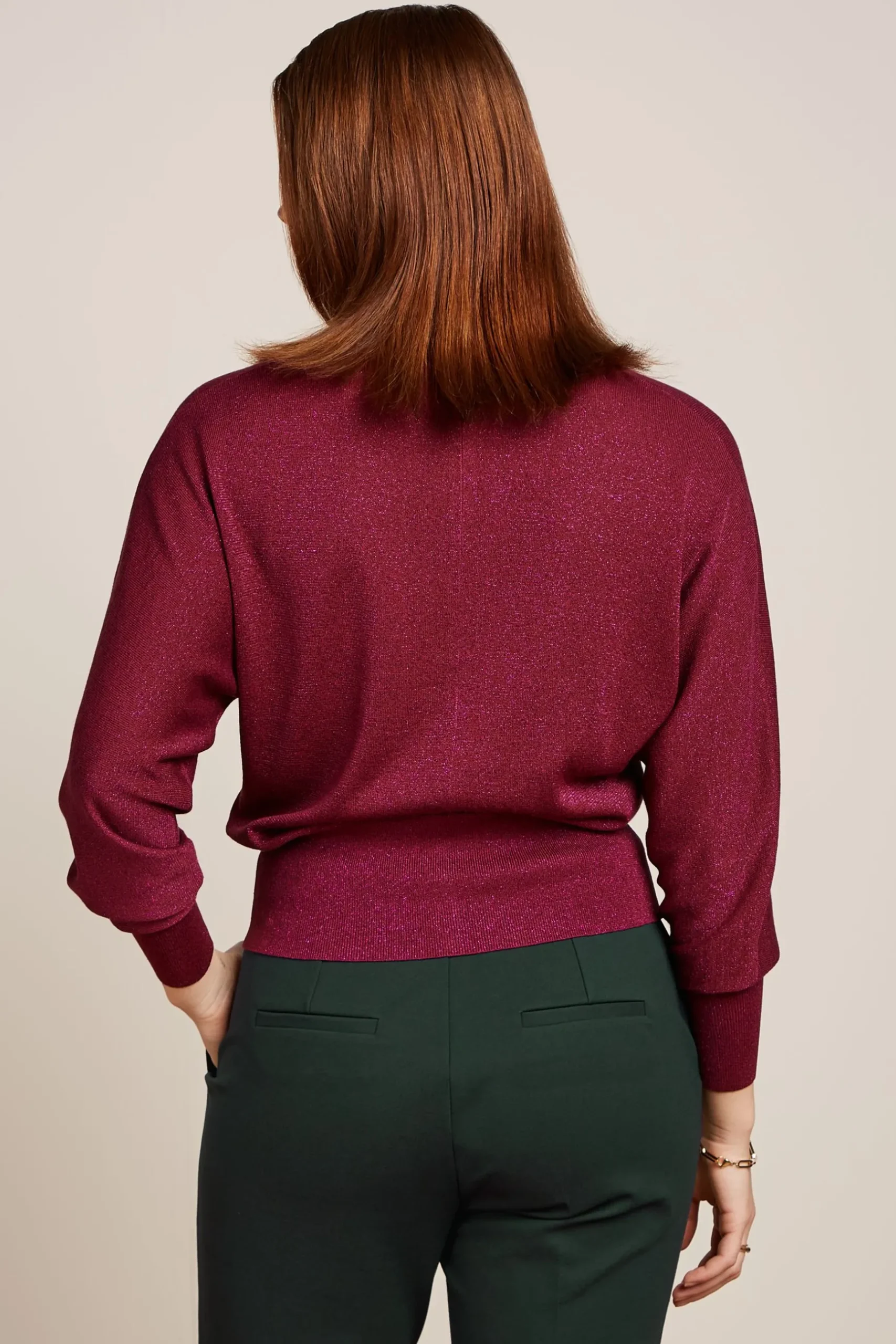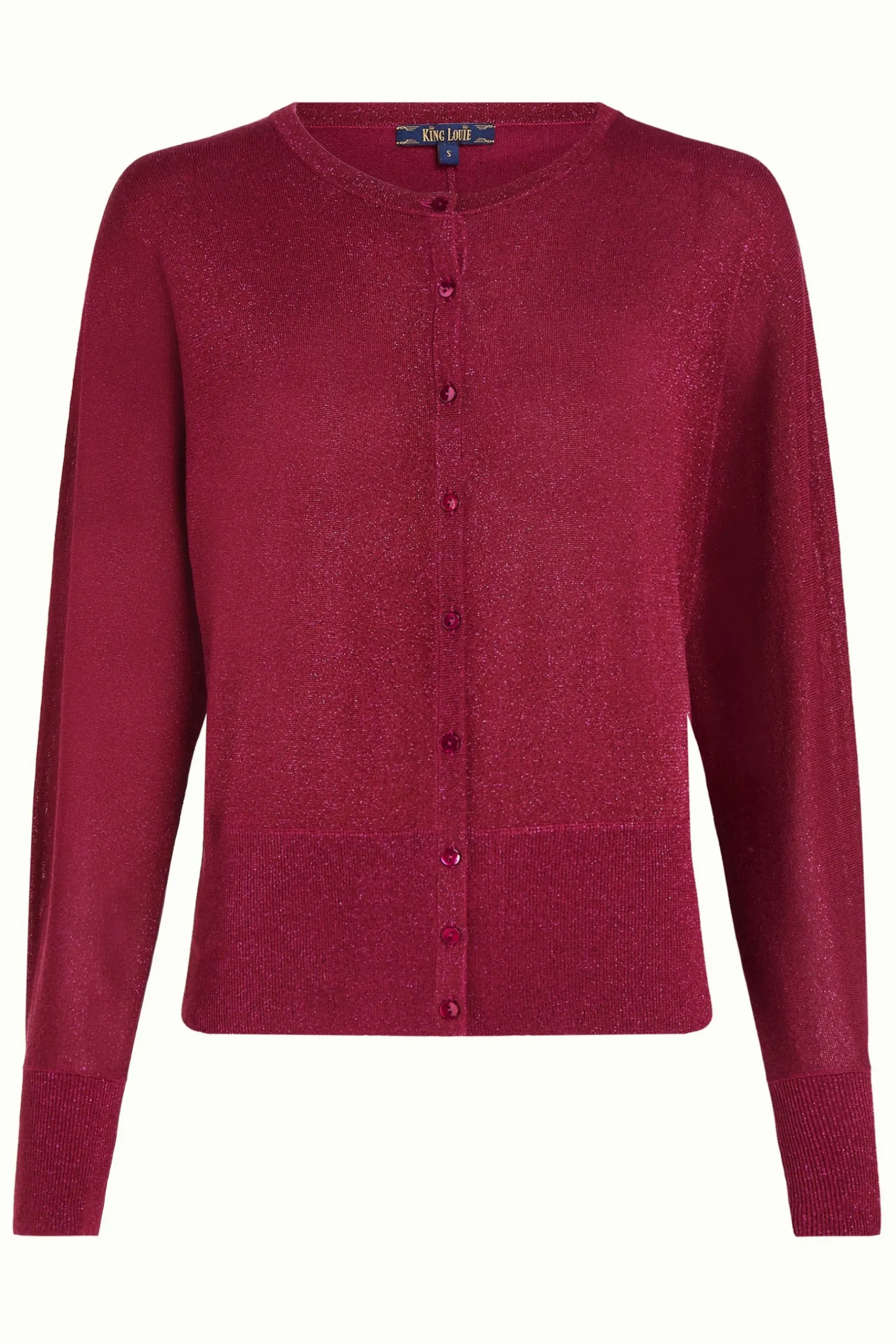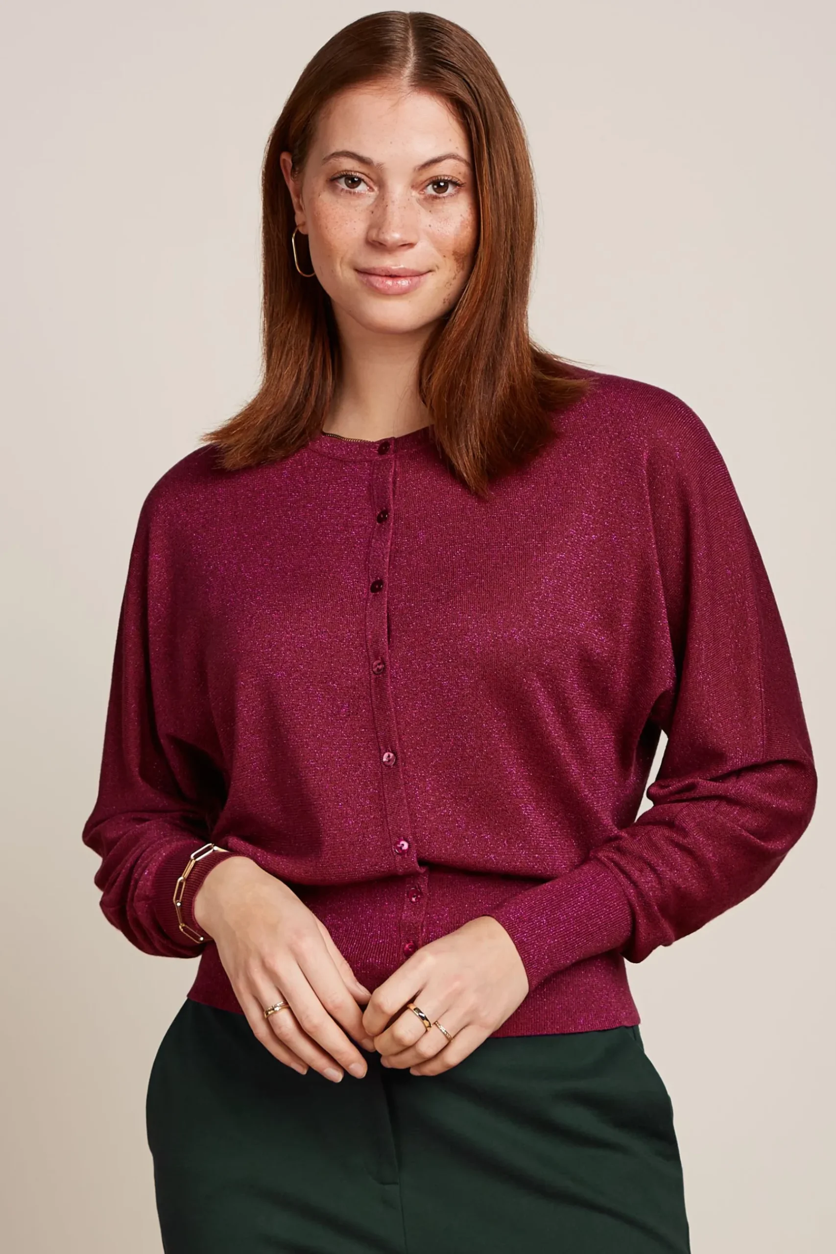 Product details Gebreide vestRonde halsVleermuismouwenKnoopsluitingGeribbelde zoom, manchetten en halslijnStretch produ…