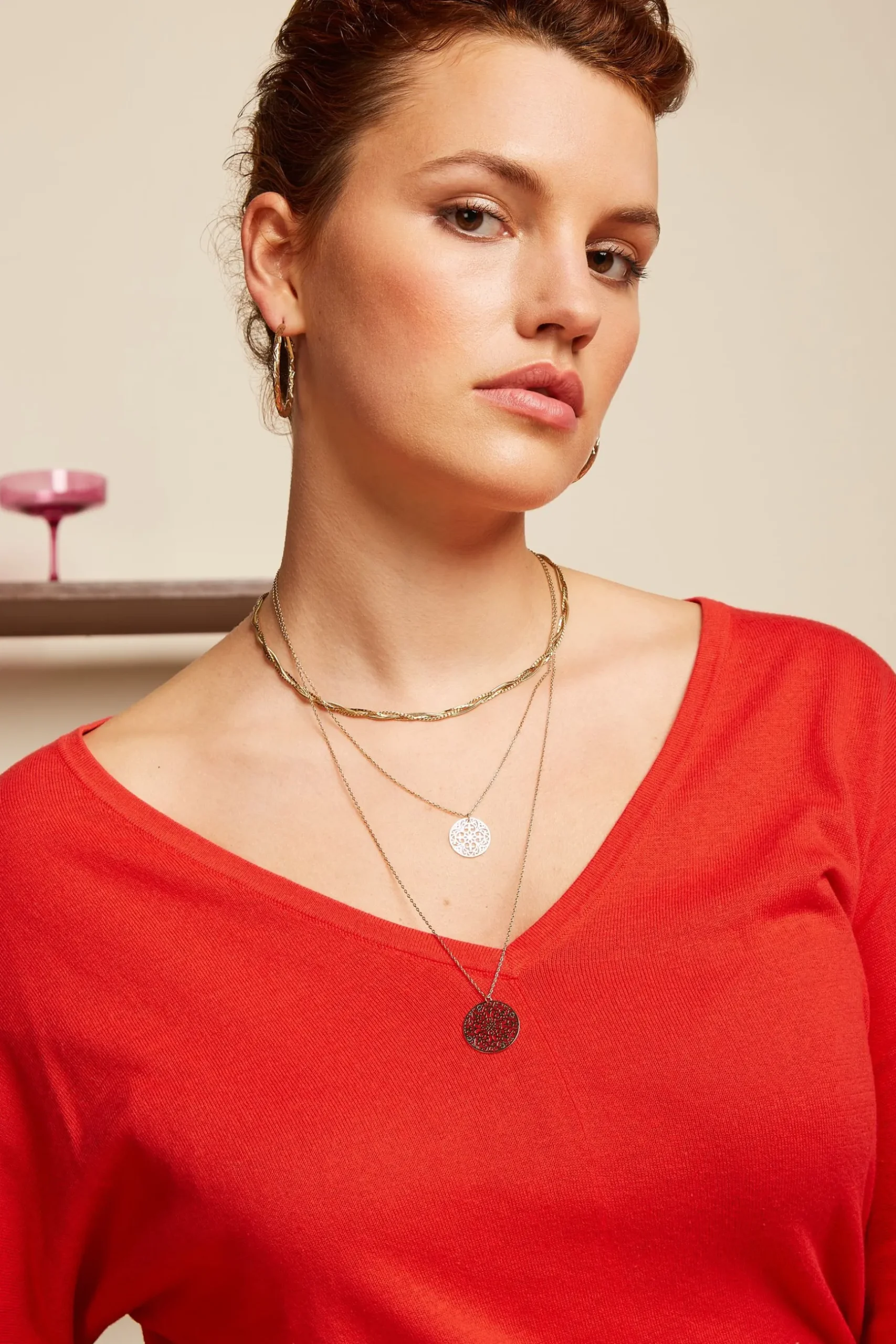 Product details Gebreide topRonde halsKorte mouwen met manchettenGeribbelde zoom, manchetten en halslijnStretch product…