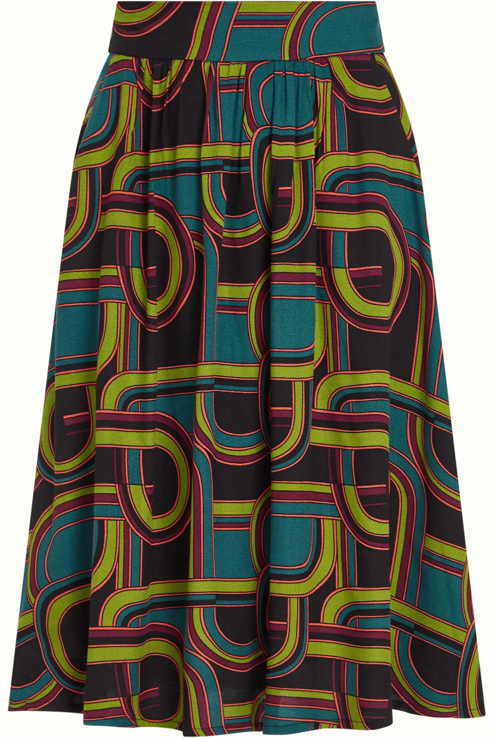 Product details Uitlopende rokKnoop- en ritssluitingZakken in de zijnaadGewevenGrafische print productspecificatiesGema…