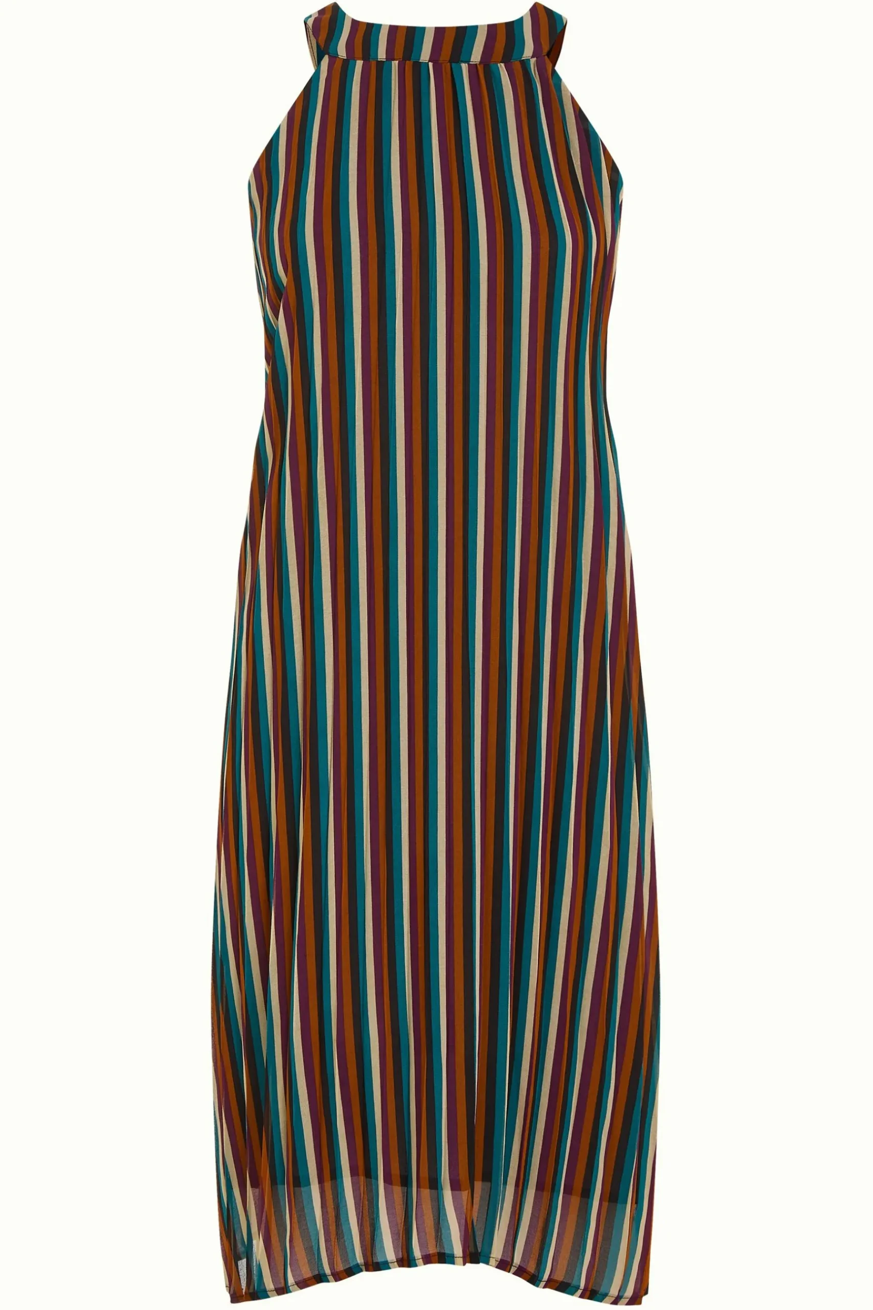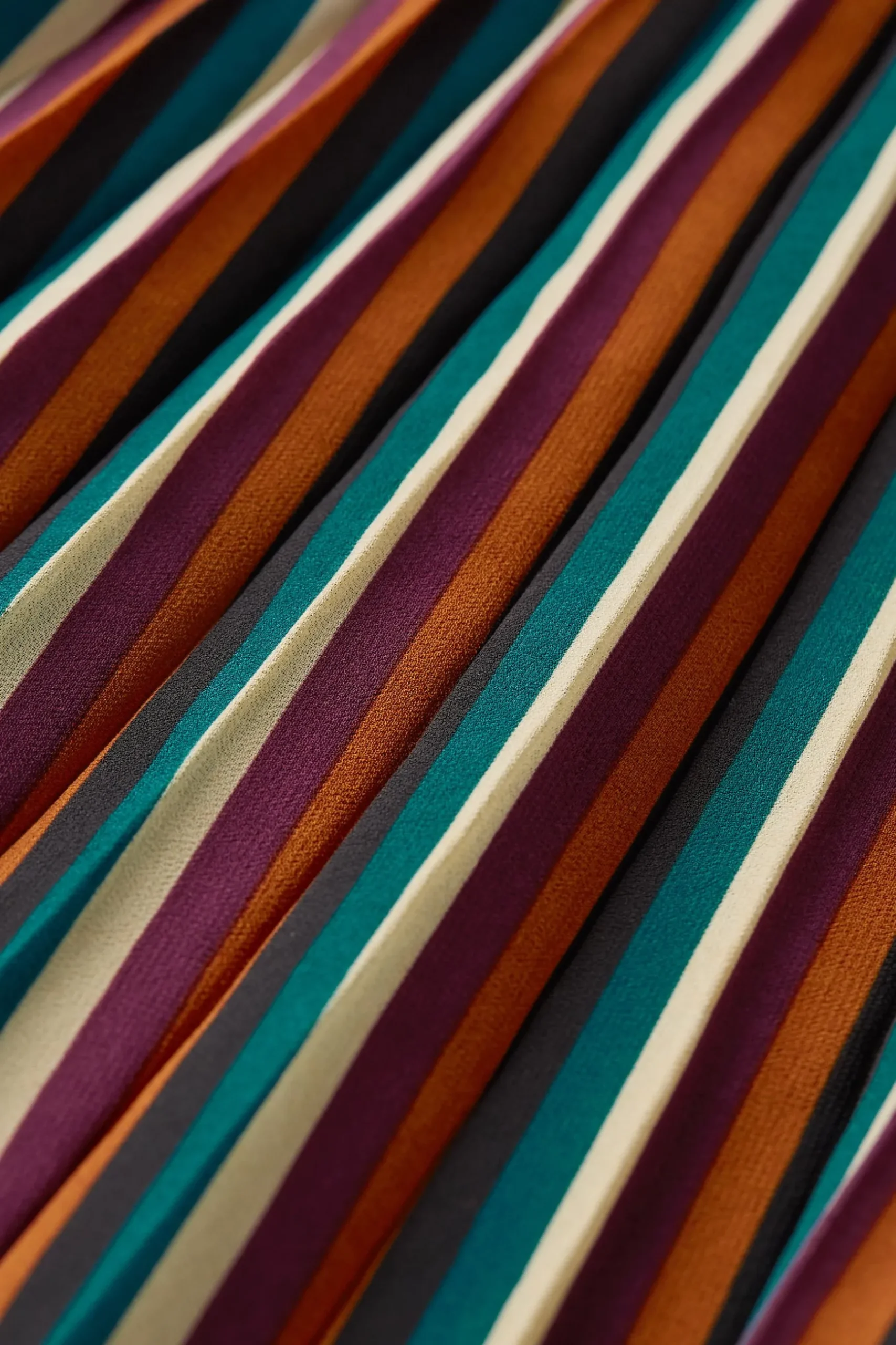 Product details Korte plissé jurkMouwloosHoge ronde halsKeyhole sluiting op de rugGewevenNon stretchStrepenprint produ…